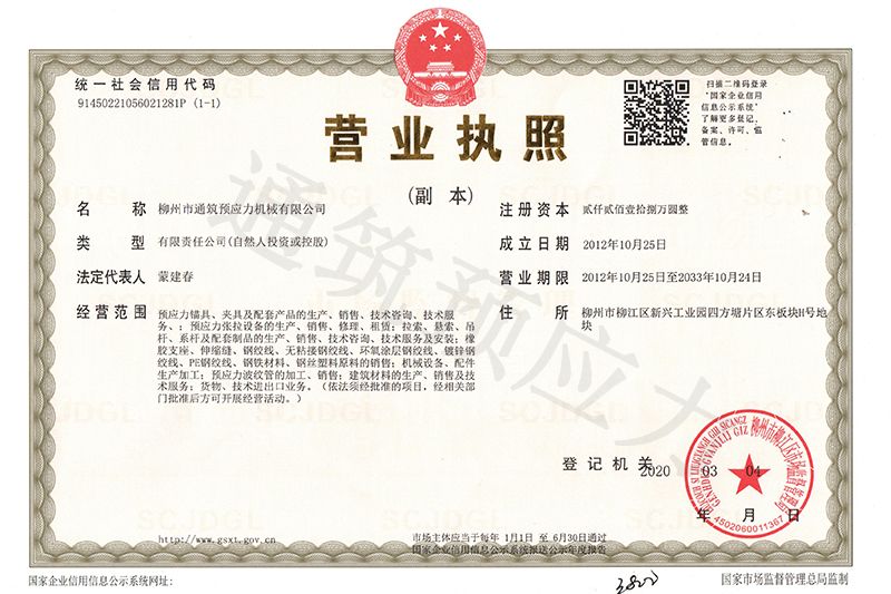 柳州市通筑預(yù)應(yīng)力機(jī)械有限公司,集預(yù)應(yīng)力產(chǎn)品研制開(kāi)發(fā),機(jī)具,錨具生產(chǎn)、工程施工為一體的專(zhuān)業(yè)企業(yè)。其產(chǎn)品廣泛用于路橋、市政、高層建筑、電站建設(shè)、巖土錨固、深基坑支護(hù)等工程。 公司經(jīng)過(guò)多年的發(fā)展,技術(shù)力量雄厚,擁有一批多年從事預(yù)應(yīng)力錨具設(shè)計(jì)、制造與維修和施工的專(zhuān)業(yè)人才,可為用戶(hù)提供優(yōu)質(zhì)價(jià)廉產(chǎn)品、良好售后服務(wù)及專(zhuān)業(yè)技術(shù)咨詢(xún)。 公司按照ISO9001-2000國(guó)際標(biāo)準(zhǔn)進(jìn)行管理,建立起一套嚴(yán)格的產(chǎn)品管理制度,其質(zhì)量體系通過(guò)率中國(guó)質(zhì)量認(rèn)證中心的認(rèn)證注冊(cè),產(chǎn)品質(zhì)量穩(wěn)定可靠,所生產(chǎn)的預(yù)應(yīng)力系列產(chǎn)品,經(jīng)國(guó)家權(quán)威部門(mén)檢測(cè),...
